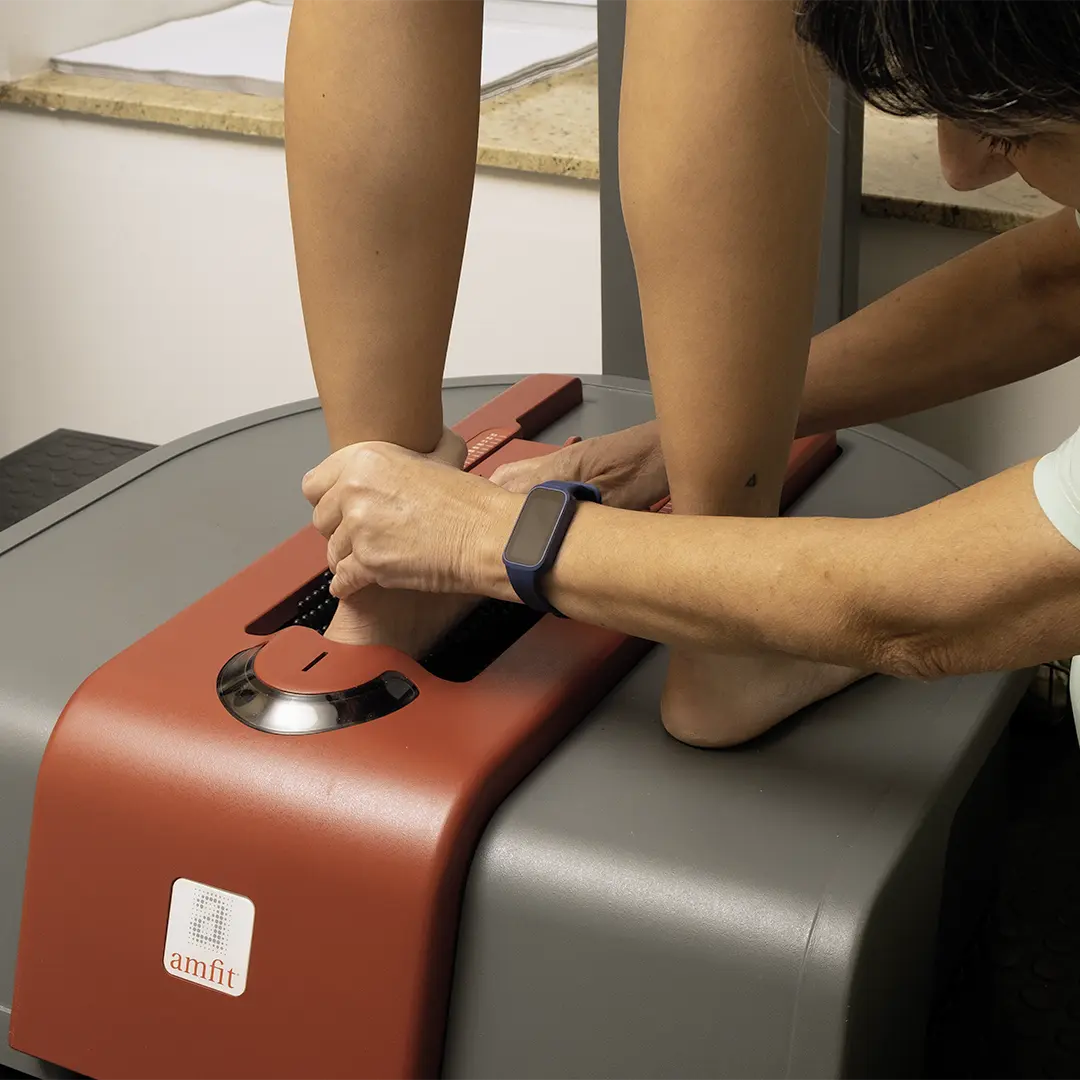 El sistema Amfit es una técnica CAD-CAM para la confección de ortesis plantares. Consiste en realizar un molde mediante un digitalizador específico, en carga y que permite la realización de correcciones mediante la manipulación del pie, la colocación de elemento s correctores o la inclusión de modificaciones mediante software. El molde “corregido” es enviado vía telemática a la empresa fabricante. Una fresadora obtiene la ortesis de forma exacta al molde enviado, pudiendo utilizar materiales (E.V.A) de distintas densidades.